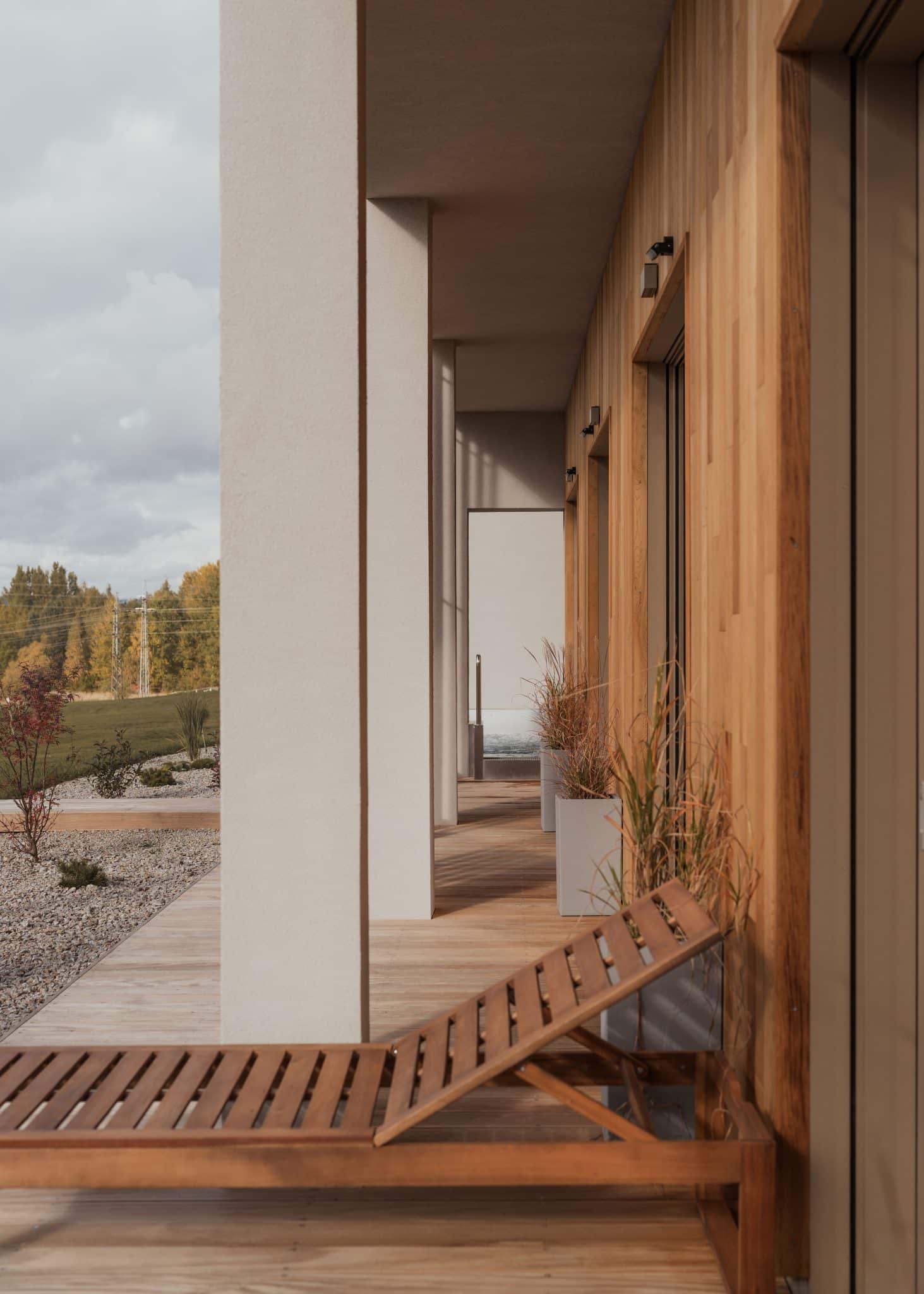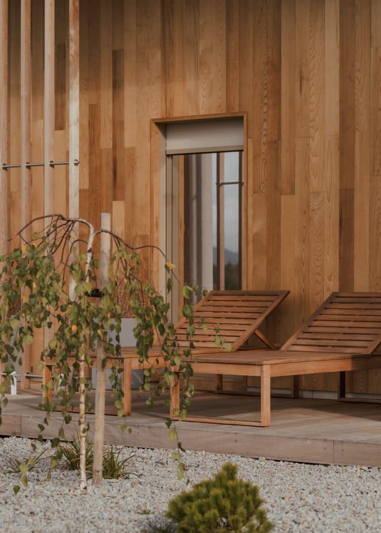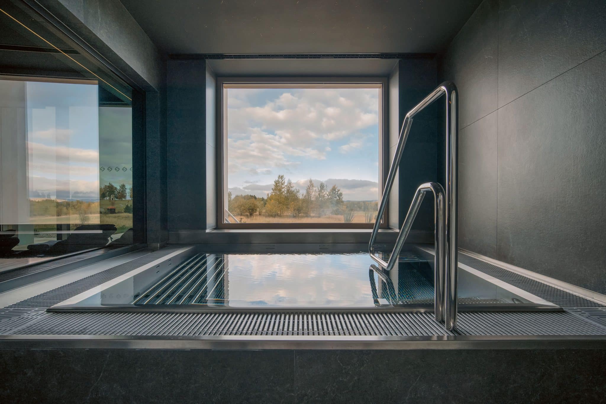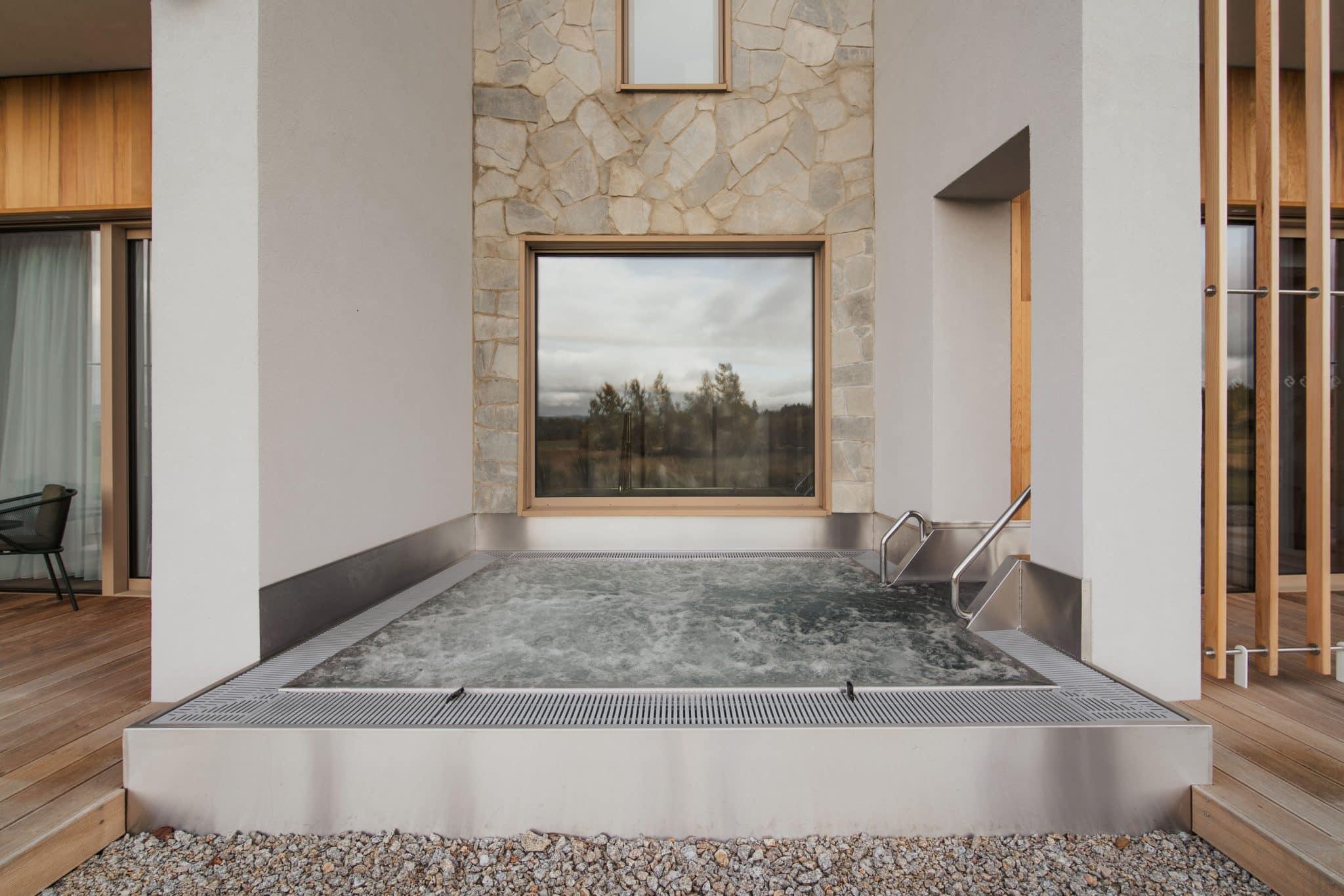 Zum Wellnessbereich gehören eine finnische Sauna, ein Dampfbad, ein Innenwhirlpool, ein Außenwhirlpool, Duschen und ein Kühleimer in unmittelbarer Nähe der Sauna. Zur Entspannung stehen den Gästen auch Liegestühle auf der Außenterrasse zur Verfügung, die sich ideal zum Relaxen zwischen den einzelnen Anwendungen eignen.
